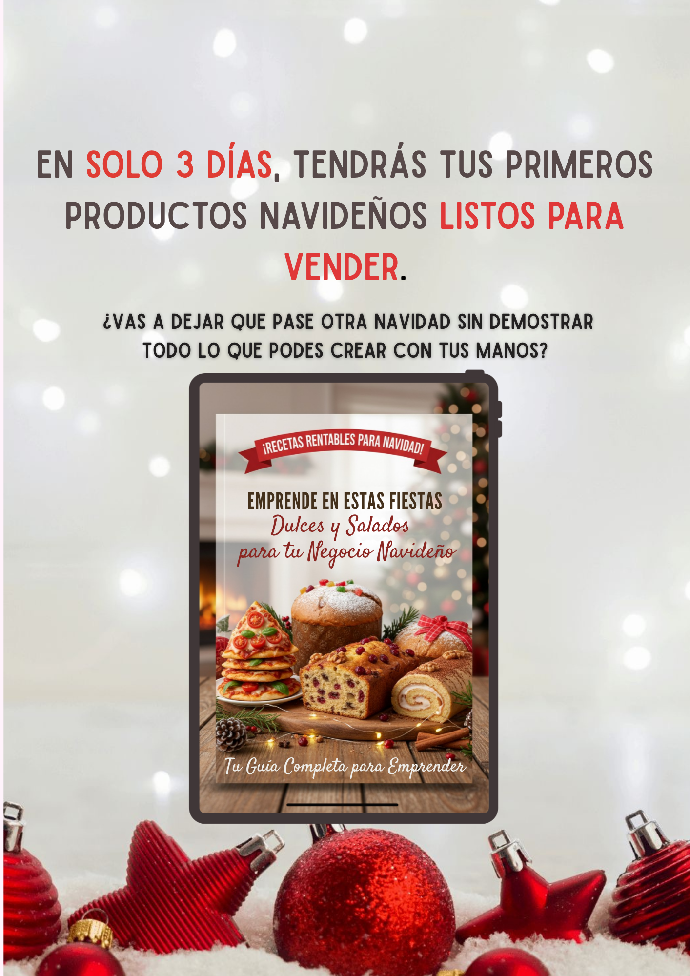 Este ebook es una guía completa para emprender en la temporada navideña. Te enseña paso a paso cómo crear, producir y vender productos festivos (como pan dulces, arrollados, postres, pizzas, y más) con recetas, precios orientativos en Argentina, ideas de presentación y tips de venta.