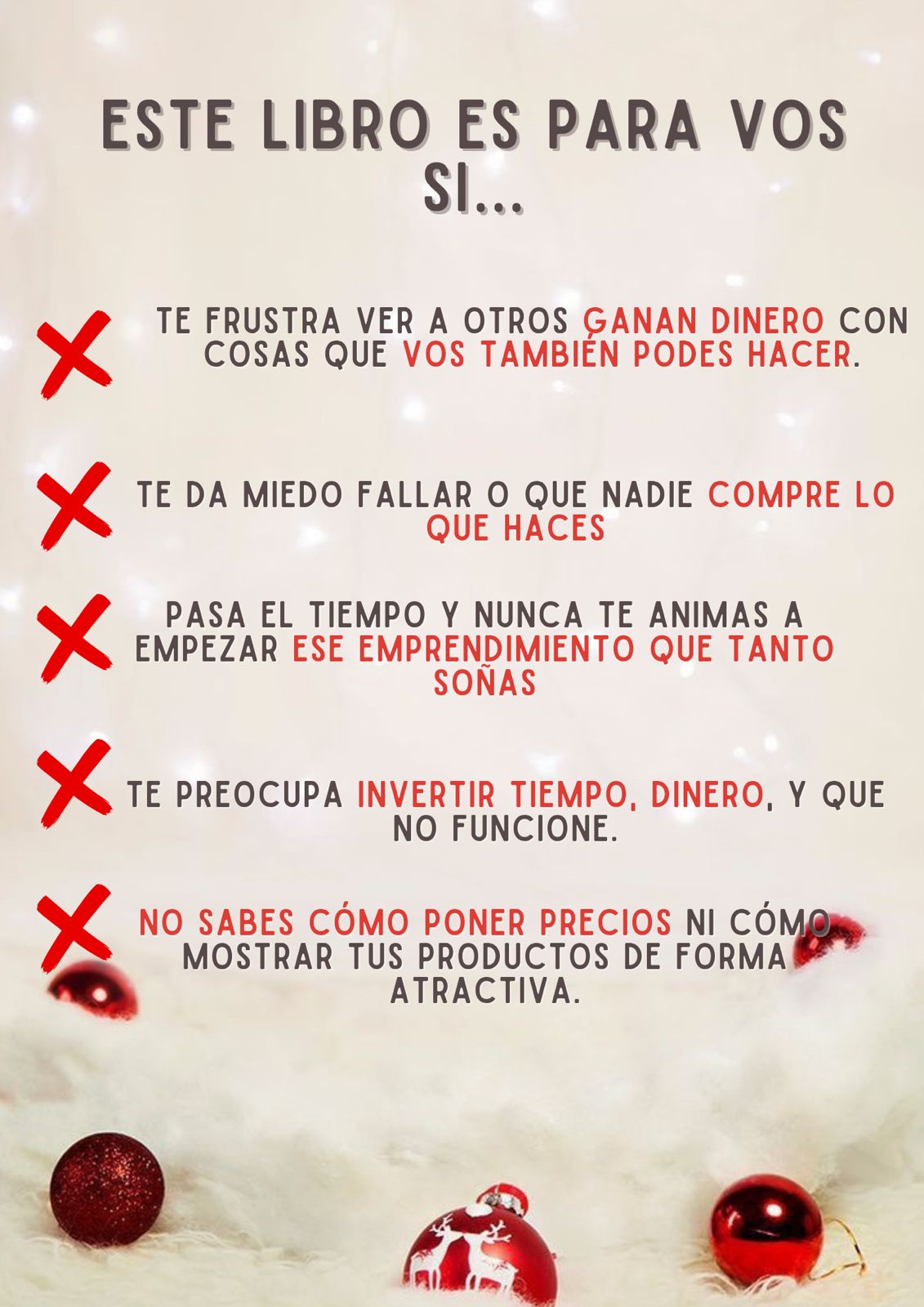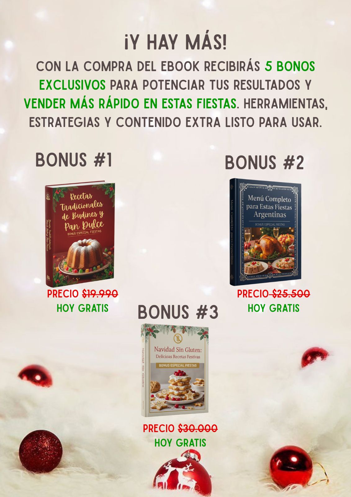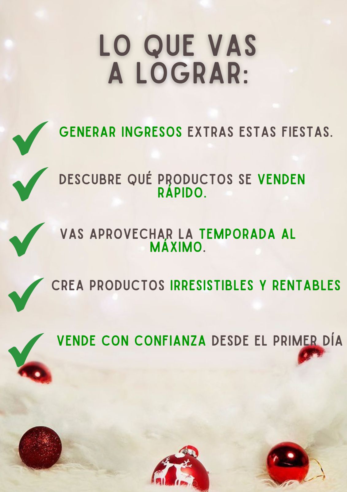 ¡Para nada! Está pensado tanto para principiantes como para quienes ya tienen un pequeño emprendimiento y quieren aprovechar al máximo las fiestas. Vas a encontrar explicaciones simples, consejos prácticos y ejemplos reales.